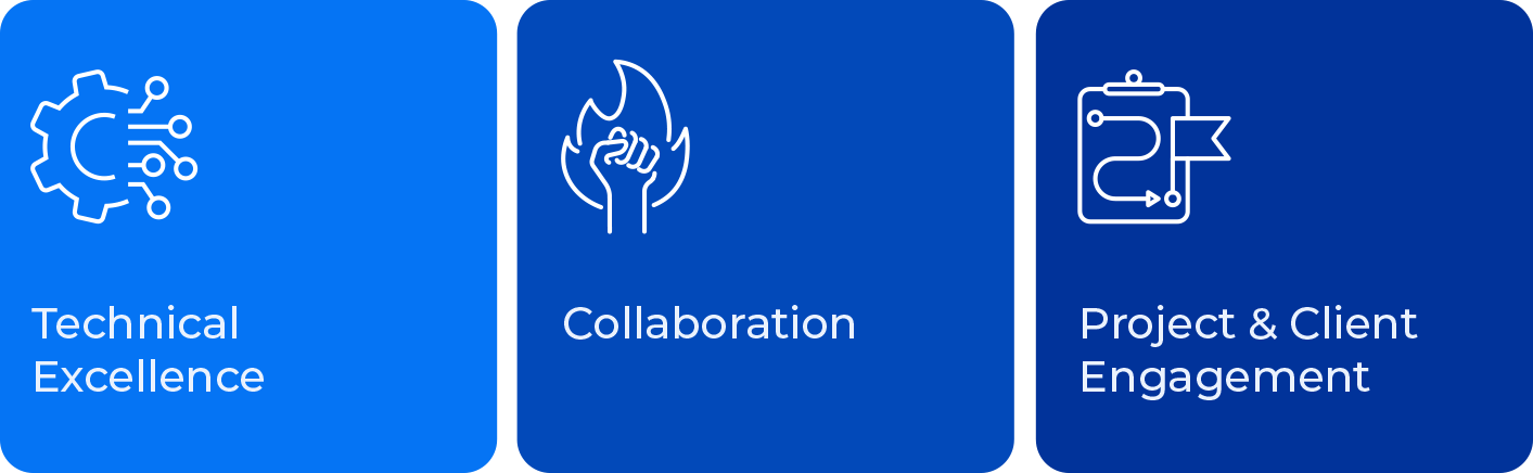 Together, our Technology and L&D teams built a three-pillar model that balances technical expertise with collaboration and client engagement: