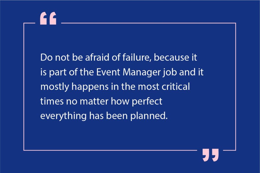 To not be afraid of failure, because it is part of the job and it mostly happens in the most critical times no matter how perfect everything has been planned. Crisis management is part of the job and you better have the nerves for it 🙂