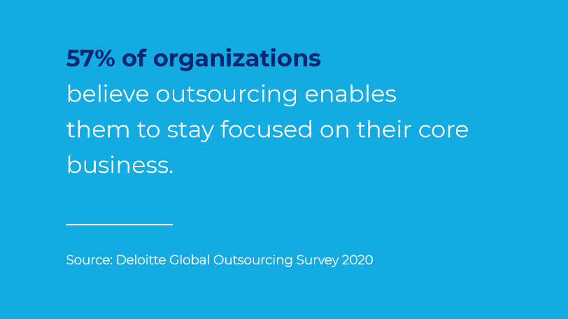 On this note, the same Deloitte research states that 57% of the organizations polled believe outsourcing enables them to stay focused on their core business activities.
